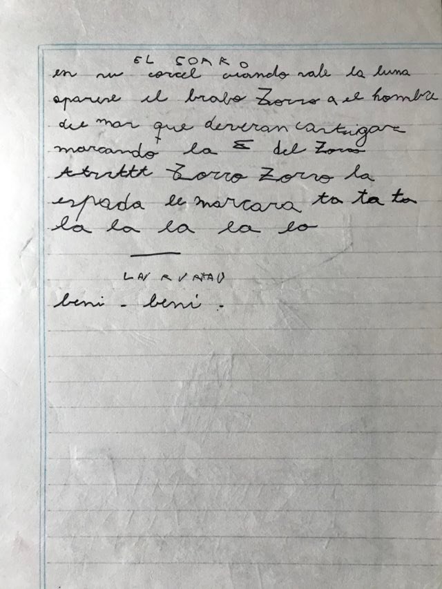 Anverso y reverso: El zorro despliega sus dotes de espadachín indomable en uno de los primeros trazos que le hacen con tinta china. Alguien cuenta su historia con más de una falta de ortografía