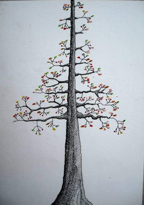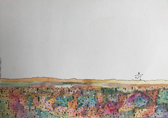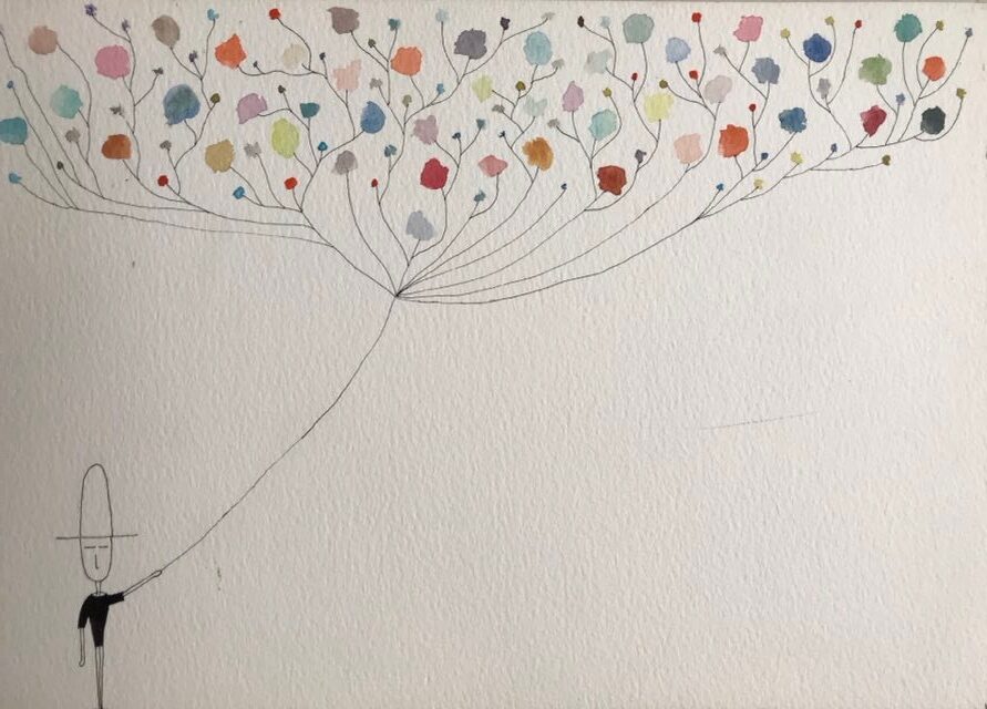 Estas obras forman parte de una serie en la que exploro la combinación de tintas y acuarelas, y los colores y efectos lumínicos que resultan de ese encuentro. También me interesa investigar la relación entre la línea, como elemento del dibujo, y la mancha pictórica. Todo ello en una imagen que entronca con el género fantástico y la imagen onírica del surrealismo.