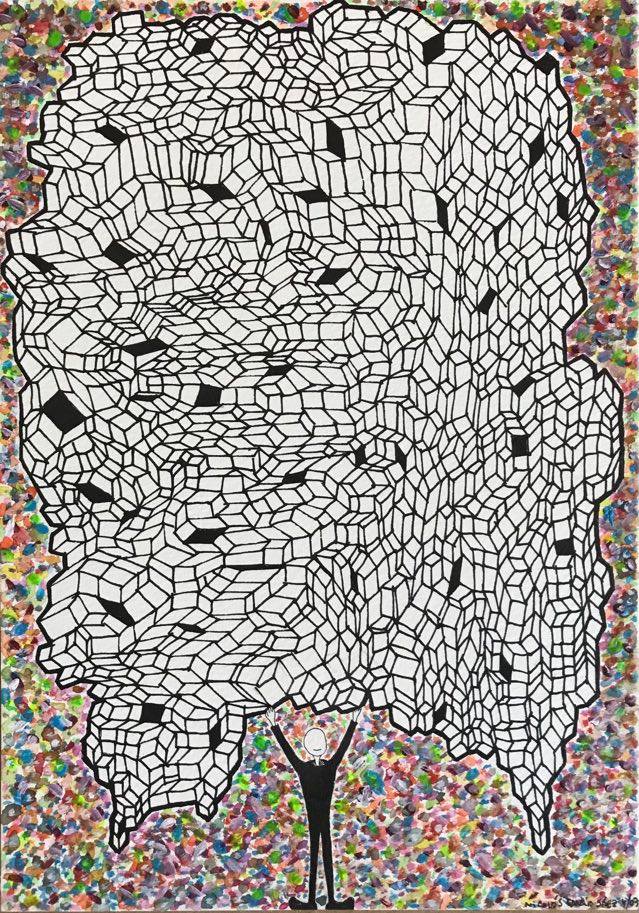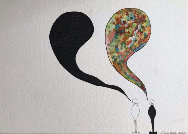 This work is part of a series where I explore the combination of inks and watercolors, and the colors and lighting effects that result from that encounter. I am also interested in investigating the relationship between the line, as an element of drawing, and the pictorial stain. All this in an image that is linked to the fantastic genre and the dream image of surrealism.